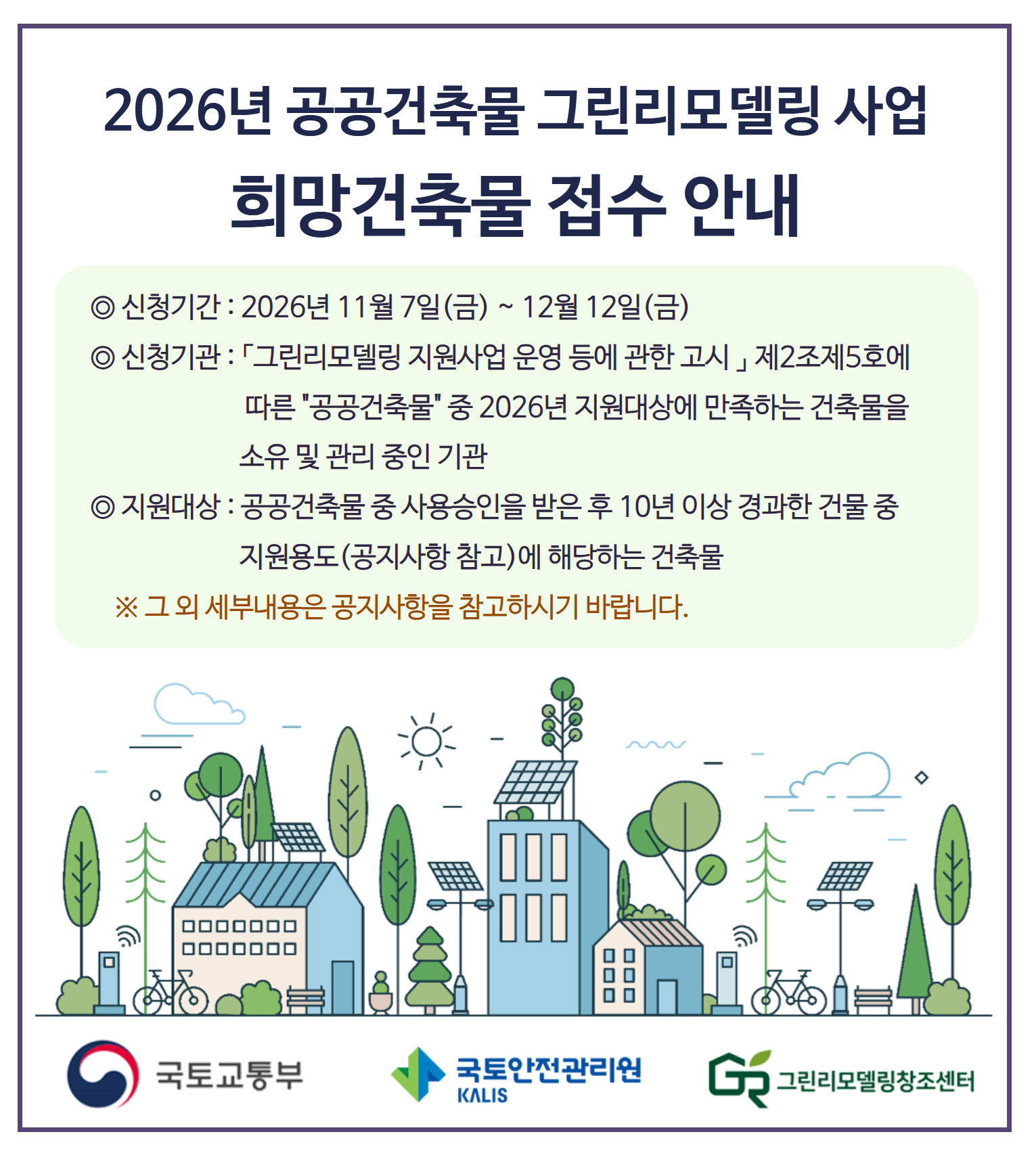 - 2026년 공공건축물 그린리모델링 사업 희망건축물 접수 안내 2025-11-05