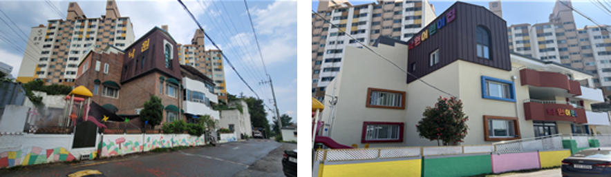 1996년에 준공된 낙원어린이집은 철근콘크리트 구조로 건설된 지하 1층, 지상 3층 규모의 노유자 시설입니다. 이 건물의 연면적은 676.05㎡로, 평일 오전 7시 30분부터 오후 7시 30분까지 운영되고 있습니다. 준공된 지 약 27년이 지나면서 건물의 외벽과 창호의 단열 성능이 크게 떨어졌고, 냉난방 설비 역시 노후화되어 교체가 시급한 상태였습니다. 이에 따라 유지 비용이 상승하고 에너지 소모량이 증가하면서 효율 개선이 필수적인 과제가 되었습니다. 이러한 상황에서 낙원어린이집은 그린리모델링을 통해 에너지 절약과 온실가스 배출 저감을 동시에 실현할 수 있는 계획을 실행했습니다.